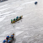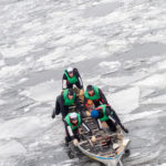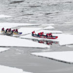 Le spectacle est fascinant. Au-delà des conditions relativement extrêmes imposées par la course (températures glaciales, incertitude de la glace, courant etc.), l’habilité avec laquelle les canotiers passent de l’eau à la glace est impressionnante. Alors que l’avant-bâbord et l’avant-tribord s’extirpent les premiers du canot au contact de la glace, la barreur doit se lever en dernier, au risque de plonger dans l’eau s’il descend trop tôt. Mais il ne doit pas tarder non plus car son poids retarde la poussée du canot…