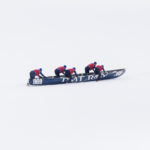 Les canots heurtent la glace dans un terrible craquement qui résonne jusqu’aux berges du port. Le son est tellement fort que le barreur pourrait tomber à l’eau sans que ses coéquipiers ne l’entendent (dixit une de nos voisines qui a l’air de s’y connaître) ! Les tenues des « coureurs » sont assez légères malgré les conditions (on peut même apercevoir des bouts de dos, dénudés par l’effort): à peine un maillot, une paire de collants, un bonnet (parfois) et surtout quelques tours de ruban adhésif autour des chaussures pour les fixer et garantir qu’elles tiennent la route jusqu’au bout!