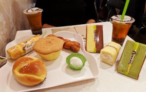 Bilan ? Et bien au risque de vous surprendre, plutôt positif ! Les textures aériennes et particulièrement moelleuses des sponge cakes (très peu sucrés par ailleurs) donnent la sensation de croquer dans un petit nuage ! Pour le reste, les textures et les saveurs sont assez déroutantes, mis à part la torsade à la cannelle qu’on aurait pu trouver dans une boulangerie classique. Quant au thé « à bulles », cela ne ressemble à aucune expérience préalable ! Après avoir percé l’opercule de nos gobelets pour y plonger notre paille au diamètre XXL puis aspiré un peu de liquide, là, oh, surprise, une énorme bille semi-solide nous arrive dans la bouche, comme ça, sans prévenir ! Il s’agit en fait de billes de tapioca, colorées en noir, qui baignent dans le thé glacé aromatisé. C’est surprenant, sans véritable goût, et presque dérangeant. On a envie de se dire « Mais qu’est-ce que je fais de ça maintenant que c’est dans ma bouche ??? » et on s’interroge encore sur l’intérêt d’une telle boisson…